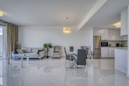 Price drop for a quick sale, great opportunity!! Immaculate unit in a superb location, walking distance to the wonderful beaches of Costalita (15 mn) and to a commercial area (5mn) with everything you need: supermarkets, restaurants, cafés, pharmacy, bank... No need for a vehicle. The location of the urbanisation is highly desired, in calm and trendy Bel Air, right between Marbella and Puerto Banus (15mn) and central Estepona (10mn). As you enter, you will find a large living room and open plan kitchen, fully equipped with german appliances. It leads to a fabulous 38m2 terrace, facing a recently created green area, so you are assured that nothing will ever be built and that the fantastic open views will remain. Enjoy a large, cool terrace year-round, and soft natural light (floor-to-ceiling height is huge for a first floor). Moreover, the calm that results from this promises lovely evenings overlooking the sunset. The rest of the property includes three spacious bedrooms with plenty of wardrobe space, all leading to the terrace. Bright throughout, thanks to the floor-to-ceiling ample windows. The master is huge, with en suite bathroom. There is a second full bathroom with italian shower. The urbanisation is state of the art and in great condition, it includes a garden area and large swimming pool. There is an underground parking space and a storage room, included in the price. Great opportunity, easy viewings, a must see!