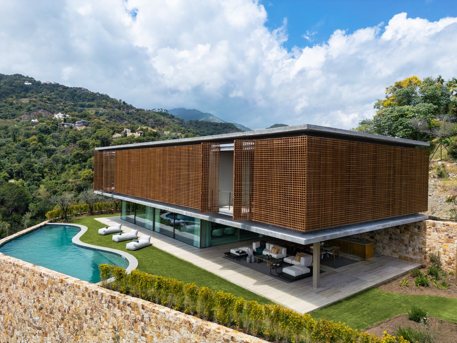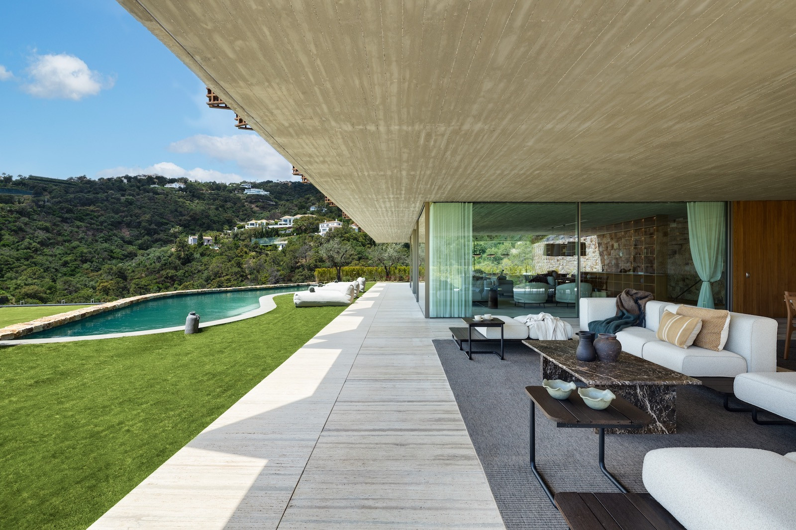 Villa Alia, sets a new benchmark for refined living within the prestigious El Madroñal area in Benahavís. Designed by renowned architect Marcio Kogan in collaboration with Lamar Development. Positioned in one of the most sought-after gated communities, the south-west facing villa offers sweeping panoramic views of the Mediterranean Sea and the surrounding mountain ranges. The design merges seamlessly with its beautifully landscaped garden, where a pristine swimming pool takes centre stage amidst the natural surroundings.
