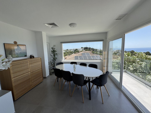 This modern 4-bedroom Spanish villa in Scandinavian style in lower Riviera del Sol offers breath-taking 180 degrees sea views and is a perfect blend of luxury, comfort and style.