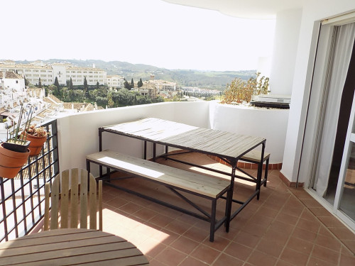 Lovely 2 bedroom 2 bathroom (one en-suite) apartment in need of a partial upgrade. Panoramic views over Mijas Golf down to the sea from a good size terrace. Sold fully furnished and comes with one underground parking space included. Walking distance to two well known restaurants, one Italian and one Indian. South facing with wonderful sunset views. This property has great potential for investors looking for a good rental return, or for someone looking to get on the Costa Del Sol property ladder at a bargain price. Offers considered.