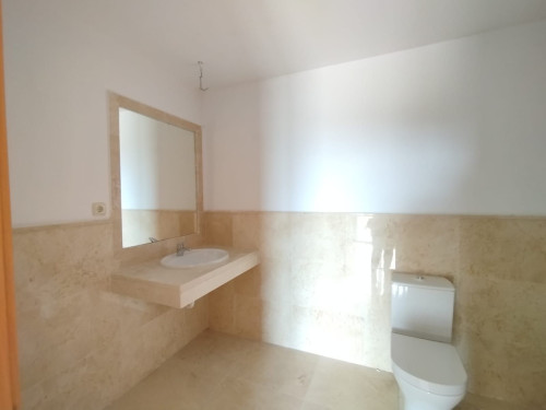 The upper floor houses the sleeping area, with an entrance hall, hallway, two bedrooms with built-in wardrobes and two full bathrooms, offering privacy and comfort. It also features a large open terrace, ideal for enjoying the Costa del Sol climate and stunning panoramic views.