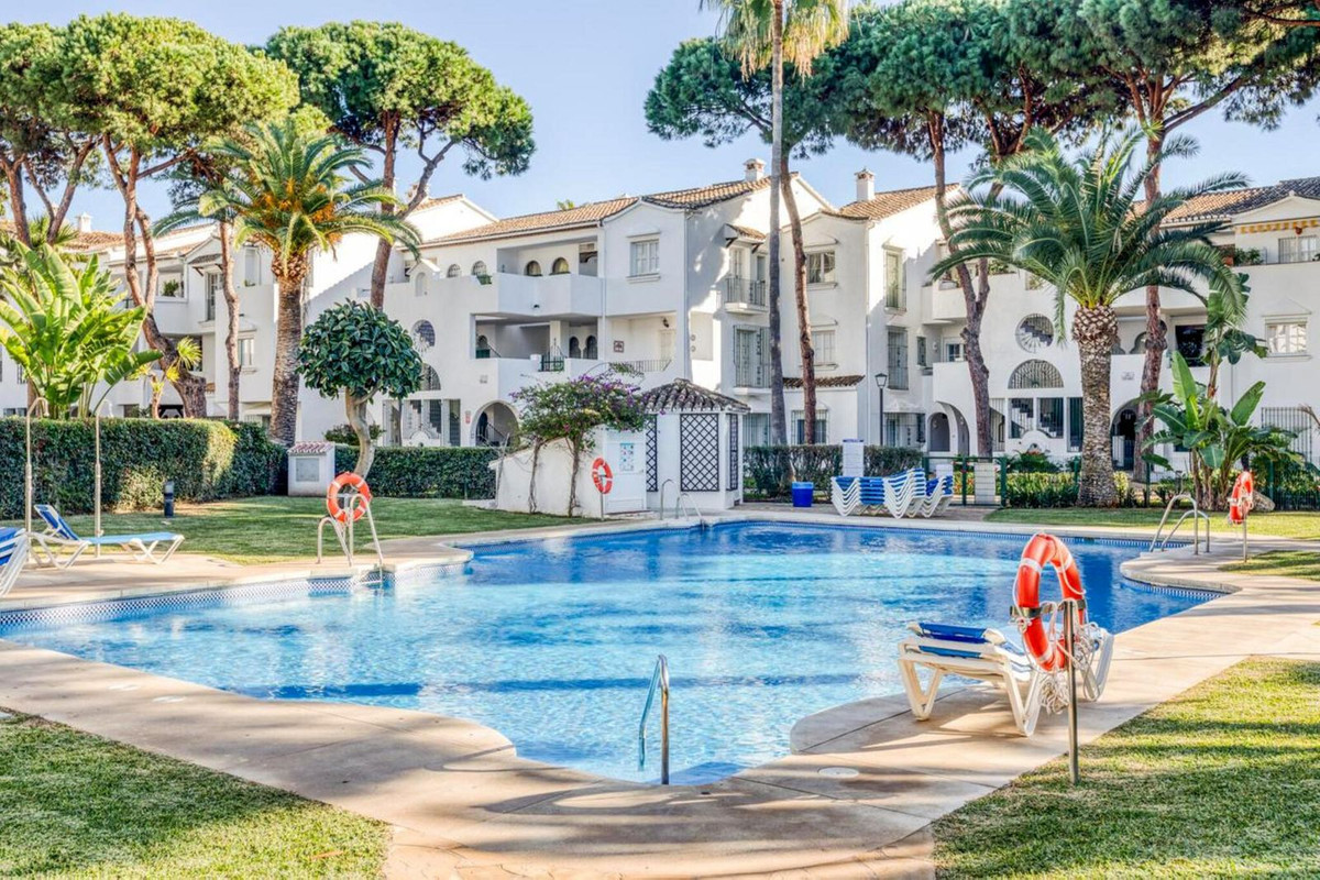 Discover this charming top-floor, 2-bedroom apartment perfectly situated in the sought-after community of El Presidente, Estepona. Bathed in natural light, the property boasts expansive open views over the large central pool and beautifully manicured tropical gardens, offering a serene and picturesque setting from morning to evening.