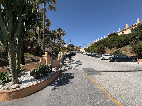 This exclusive duplex is offered for sale in Mijas Costa, located within a well-maintained gated community that combines tranquility, security, and a prime location on the Costa del Sol. Situated next to the renowned Wyndham Costa del Sol and just a few minutes from the iconic Sohail Castle in Fuengirola, this property stands out for its excellent connectivity to the N-340 road, allowing quick and easy access to Fuengirola, Málaga, and all essential services.